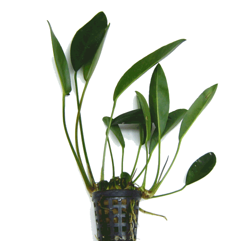 Anubias afzeli Familie: Araceae land: West-Afrika Hoogte: 40-50 cm Licht: Weinig/normaal Temperatuur: 22-28ºC, max 30 ºC Water hardheid: Zacht/gemiddeld/hard pH: 5,5-8 Plaats: Achtergrond, middenzone Omschrijving: Krachtige moerasplant met een kruipend dikke rizoom (wortelstok). In het aquarium groeit deze plant langzaam maar gestaag. De plant vormt grote langwerpige stugge bladeren en kunnen wel tot 15 cm lang worden. Elipsvormige bladeren met een licht-tot donkergroene kleur, en niet zo donker als veel van zijn familiegenoten. Deze plant stelt weinig eisen is met weinig licht en voeding tevreden. Groeit zeer goed op hout en stenen. Wanneer u de plant in de boedmgrond wilt plaatsen, dan dient u ervoor te zorgen dat de wortelstok niet onder het zand/grind komt te liggen.