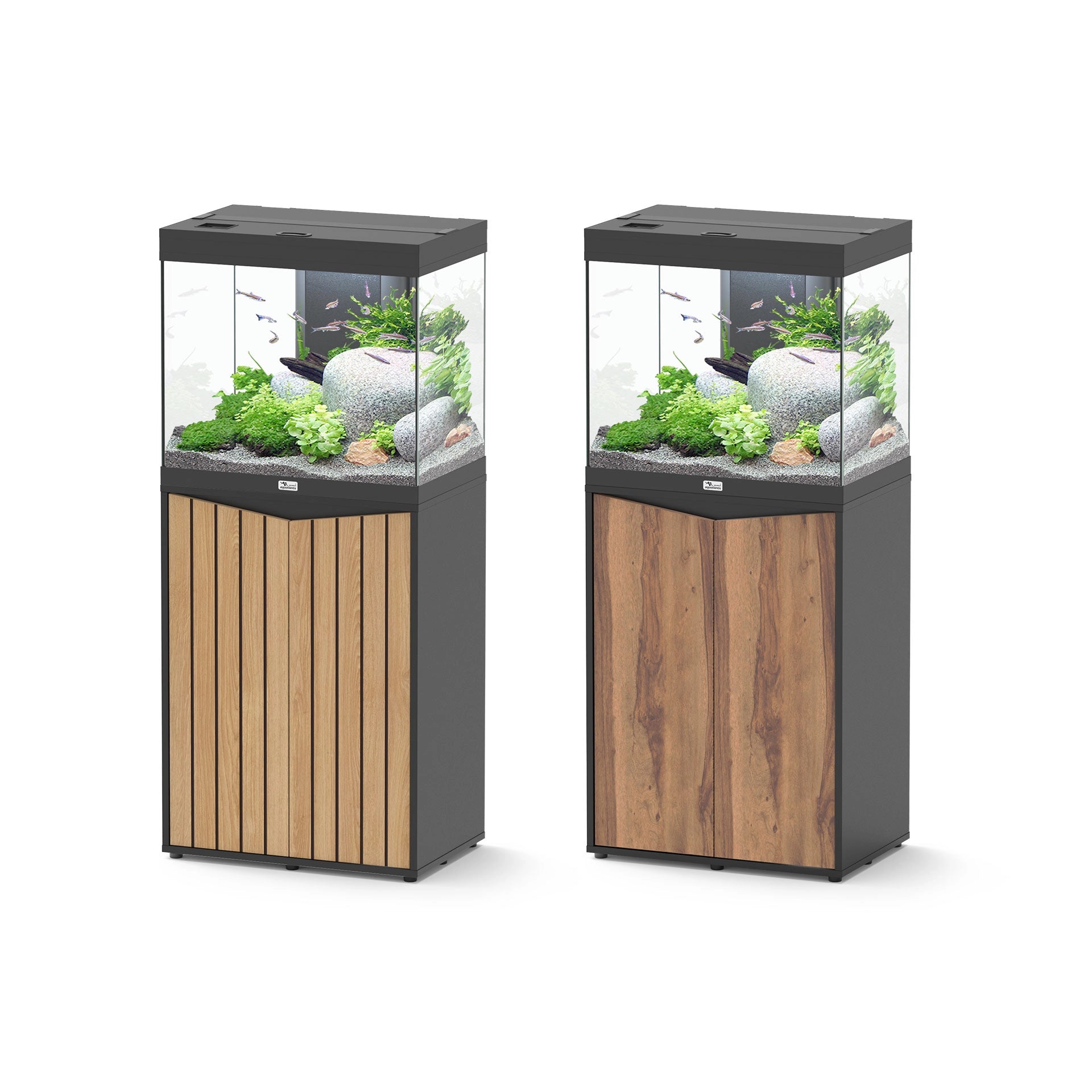 Breng design en technologie samen met de Aquatlantis Splendid 60 Ultra aquariumset, compleet geleverd inclusief bijpassend meubel. Deze stijlvolle set bestaat uit een 109 liter aquarium (60,2 x 40 x 56,1 cm) en een strak afgewerkte onderkast in bijpassende kleur. Het aquarium is uitgerust met het geavanceerd rgb led systeem, waarmee vissen en planten in hun volle kleurpracht te zien zijn. De verlichting is eenvoudig te bedienen via de slimme ori controller, waarmee je natuurlijke licht cyclus instelt voor meer rust en regelmaat in het aquarium.