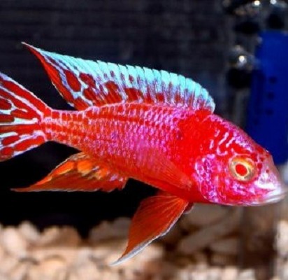 Naam: Aulonocara 'strawberry albino' Nederlandse naam: Keizerbaars Maat: 5-6 cm. Herkomst: Malawi Temperatuur: 25-27 Ph: 7.8-8,6 Moeilijkheidsgraad: Enige kennis noodzakelijk Voeding: vlees