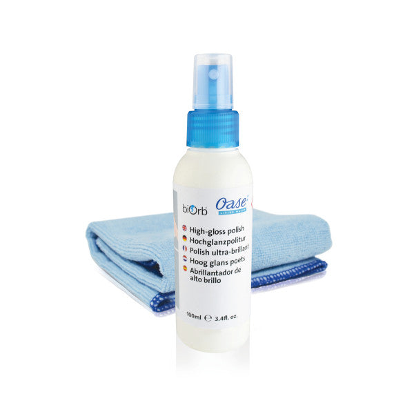 Na behandeling met polish en microvezeldoek glanst de biOrb weer als nieuw
