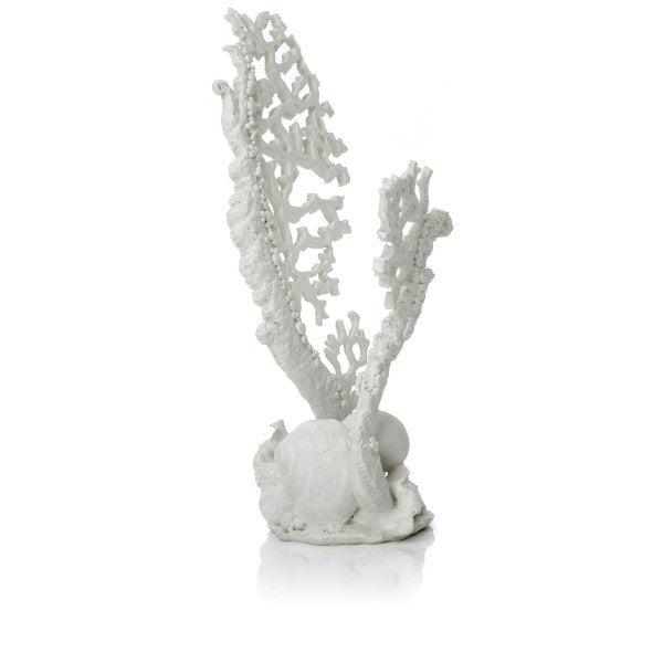In combinatie met witte en zwarte hoornkoralen en kiezelstenen wordt een moderne onderwaterwereld gecreëerd