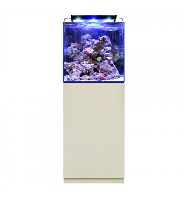 125 liter zoutwateraquarium, inclusief sump, gafzak, overloop met kogelkraan, Reefpower 2200 pomp (30 Watt), eiwitafschuimer/Skim300 (20 Watt), extra waterreservoir en ledverlichting, 50 x 50 x 136 cm.