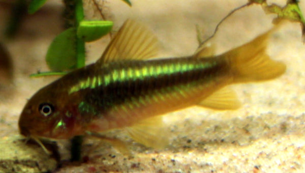 Peru Green Stripe” of “groene laser” is net als de Corydoras aeneus “Zwart” heeft een slanke body met donkere bovenlichaam met een briljant iriserende groene streep die over de volle lengte van het bovenlichaam, de vinnen zijn een licht olijfgroen.