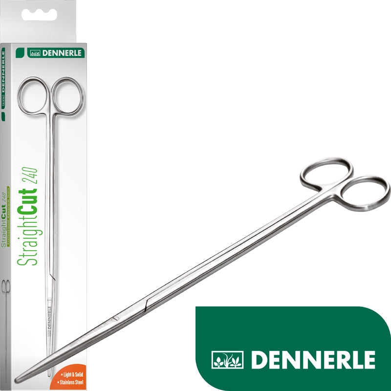 Dennerle straight cut 240 • Voor het bijknippen en inkorten van matvormende planten • Ideaal voor het inkorten van planten • Scherpe snijkanten voor makkelijk en glad snijden • Groot, ergonomisch greepgat voor een perfecte houvast • Lengte ideaal voor kleinere aquariums (240 mm), grotere aquariums (300 mm)