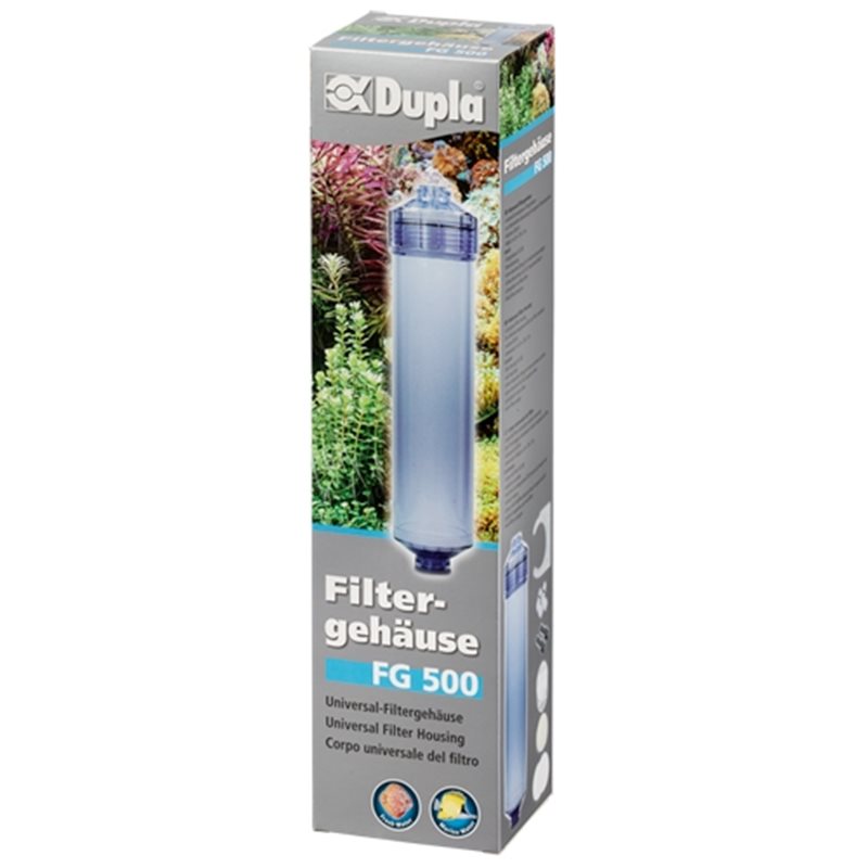 Universeel te gebruiken filterhuis voor de individuele uitrusting met eigen filtermateriaal. Inclusief slangaansluitingen. - Lengte: 29 cm - Diameter: 7 cm - Inhoud: 500 ml - 1/4 inch hoekfitting voor 6 mm osmoseslan - 1/4 inch slangmondstuk 9 mm voor 9/12 mm aquariumslang |