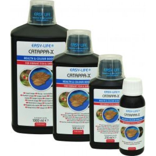 Catappa-XCatappa bladeren worden aan het aquariumwater toegevoegd vanwege de heilzame werking op vissen en garnalen. Catappa-X is de effectieve vloeibare variant hierop.