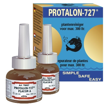 Waterverbeteraar voor siervissen in zoetwater aquaria. Protalon-727 activeert de zelfreinigende werking van de blad poriën. Het bladbeslag van o.a. Kalk, mineralen en algen vormt een bedreiging voor aquariumplanten. Dit combinatiepreparaat herstelt rechtstreeks de biologische oorzaak van bladbeslag.