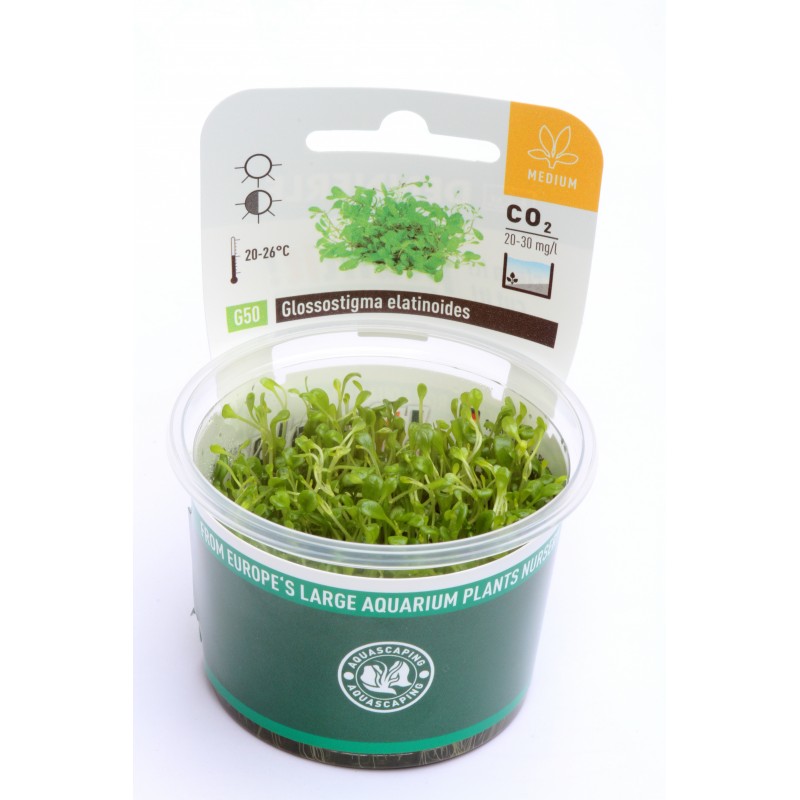 In-Vitro is in het laboratorium gekweekt onder steriele condities. Hierdoor is het vrij van gif, slakken, alg en dus ideaal en veilig voor het aquarium. Het wordt geleverd in een afgesloten bakje van 7 cm. Voor gebruik eerst de gel afspoelen. Uit de Dennerle plantendatabase: Glossostigma elatinoides In-Vitro In vitro houd in dat deze plantjes helemaal schoon zijn, en daardoor uitermate geschikt voor aquaria met garnalen en andere gevoelige dieren maar ook voor het gewone aquarium. Na openen dient u de plantjes te wassen om de steriele gelei te verwijderen. Daarna kunt u ze direct gaan planten. Pot is ongeveer 6 cm groot