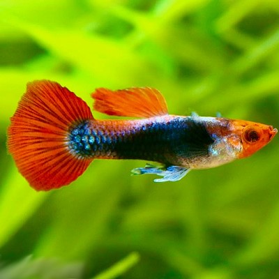 Naam: Poecilia reticulatus , Lebistes reticulatus Nederlandse Guppy koi tuxedo L (Man) Maat: L Herkomst: Midden Amerika Temperatuur: 22-28 Ph: 7 Moeilijkheidsgraad: Enige kennis noodzakelijk Voeding: Alleseter