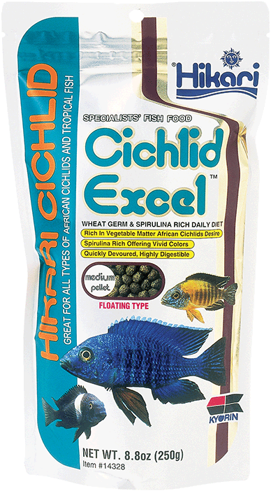 Hikari Chiclid excel, een hoogwaardig chiclide voer Hikari chiclid excel is een voeding rijk aan plantenstoffen, speciaal...