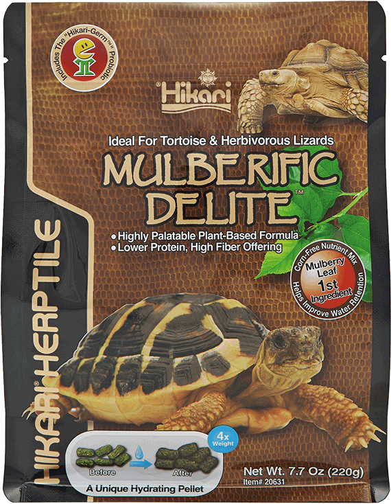Mulberific Delite is een voeding voor landschildpadden en herbivore hagedissen.