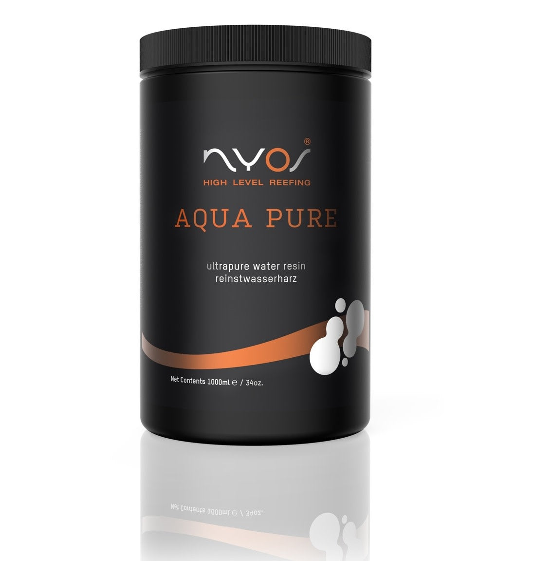 Nyos Aqua Pure is een gemengd hars, dat zorgt voor zuiver water in uw aquarium. Zuiver water wordt gerealiseerd door het verwijderen van alle ionen die overblijven na het osmosesysteem zoals ongewenste silicaten, nitraten, fosfaten, zware metalen etc.. Nyos Aqua Pure dient te worden gebruikt na het osmoseapparaat te worden gebruikt en is zeer zuinig door de hoge absorptiecapaciteit.