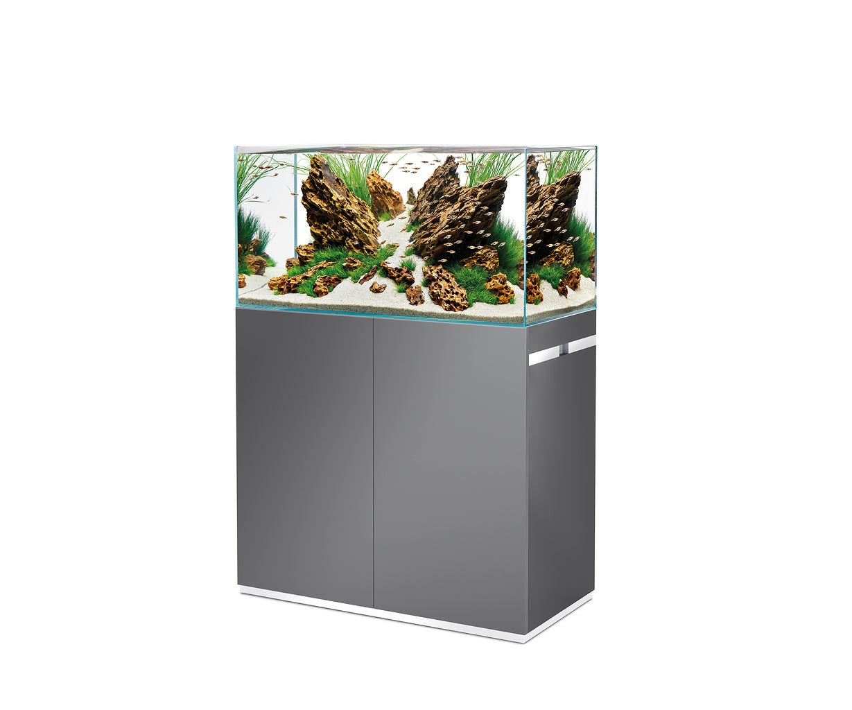 Het in verstek geslepen glas zorgt voor een fraai, opvallend design. Het aquariummeubel is gemaakt van eersteklas materialen in een elegant en fraai ontwerp. Het aquarium is verkrijgbaar in zwart en grijs. Deze kleuren zetten het aquarium met klasse weg. Zo behoudt u de professionele uitstraling.