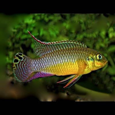 Naam: Pelvicachromis taeniatus moliwe Nederlandse naam: Maat: 4-5 cm. Herkomst: Nigeria Temperatuur: 23-28 Ph: 6,0-7,5 Moeilijkheidsgraad: Enige kennis noodzakelijk Voeding: Alleseter