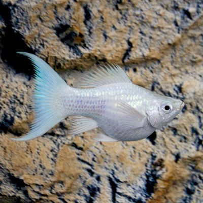 Naam: Poeciliidae sphenops Balloon platinum lierstaart Nederlandse Ballonmolly platinum lierstaart Maat: M Herkomst: Mexico - Columbia Tempratuur: 18-28 Ph: 7,5-8,2 Moeilijkheidsgraad: Enige kennis noodzakelijk Voeding: Algen / planteneter
