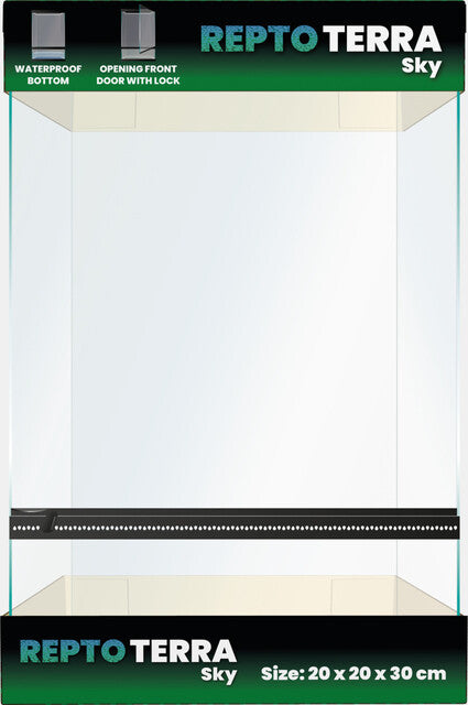 Het terrarium vormt de basis voor de juiste behuizing van uw dier. De Repto Terra Sky terrariums bieden veel praktische ruimte en een gezonde leefomgeving voor uw dieren. Door de waterdichte bodem en de ventilatie onder de deur zijn deze terrariums perfect voor het maken van een tropische of paludarium inrichting.