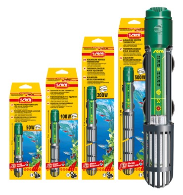 De sera aquarium-regelverwarmers zijn zeer kort en passen gemakkelijk in de kleinste aquariums. De bedrijfsindicatie (aan/uit) vindt plaats door een glimlamp.
