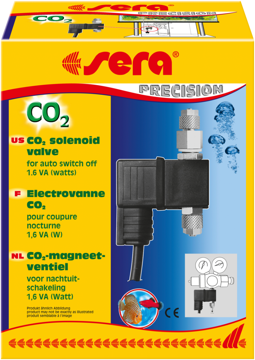 Het is geschikt voor inbouw in de reeds aanwezige en nieuwe pH-gestuurde CO2-bemestingsinstallaties. Tussen het sera CO2-magneetventiel en een CO2-gasfles moet een CO2-drukregelaar geïnstalleerd worden.