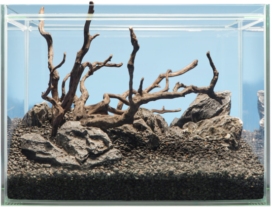 Stenen, wortels en bodemgrond voor garnalenaquariums
