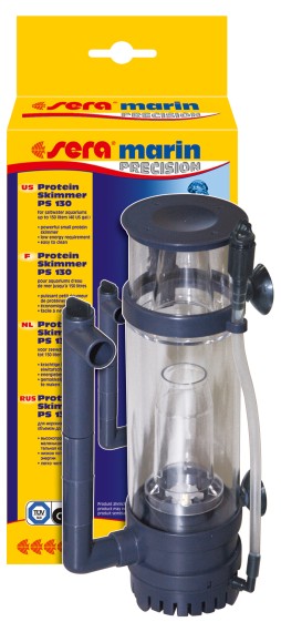 De extreem kleine en plaatsbesparende sera marin Protein Skimmer PS 130 is een van de kleinste afschuimers die er zijn en ideaal geschikt voor nanoaquariums tot ca. 130 liter. Hij heeft, net als de iets grotere sera marin Protein Skimmer PS 200, een in de behuizing van het apparaat geïntegreerde en energiebesparende dispergatorpomp, die zelfstandig lucht aanzuigt en deze met aquariumwater mengt. Beide apparaten kunnen op een eenvoudige manier door middel van een in hoogte verstelbare bevestigingsklem aan de binnenkant van het aquarium worden bevestigd. Het lucht- en waterdebiet kunnen eenvoudig worden ingesteld.