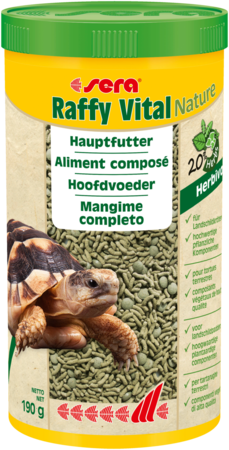 sera Raffy Vital is het hoofdvoeder van omzichtig vervaardigde sticks en kruidentabletten voor landschildpadden en alle andere herbivore reptielen.