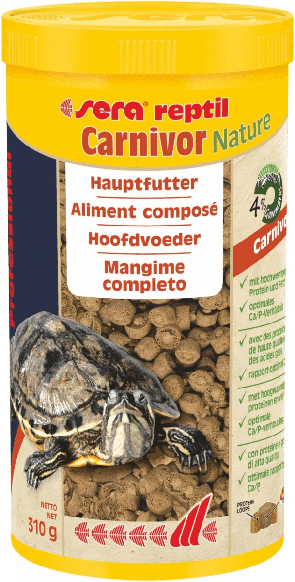 sera reptil Professional Carnivor is een aanvullend voeder dat is vervaardigd uit een drijvend, in een uiterst functioneel coëxtrusieproces samengesteld tweekleurig granulaat voor alle vleesetende reptielen zoals waterschildpadden.