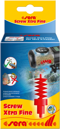 De rode transportschroef sera Screw Xtra Fine transporteert voeder met een kleinere granulaatgrootte (0,1 – 1 mm). De voederdosering is ongeveer 7 keer lager in vergelijking met de zwarte schroef die in de X-Feeder is geïnstalleerd. Het te transporteren voeder moet een gelijkmatige korrelgrootte hebben.