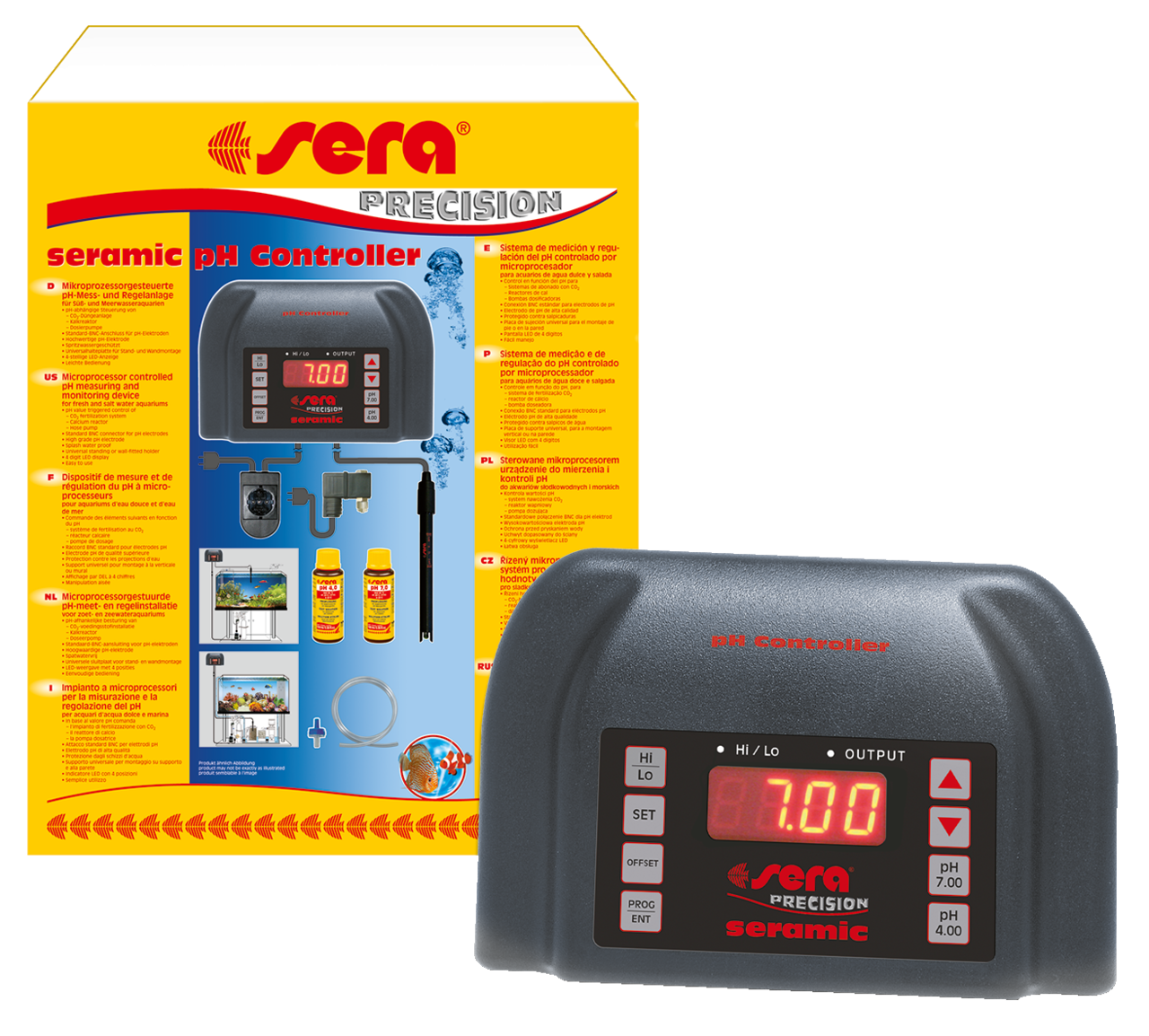Processen zoals de CO2-toevoer naar het water zijn afhankelijk van de pH-waarde en kunnen daarom eenvoudig via de pH-waarde bepaald en geregeld worden. De seramic pH-Controller meet de pH-waarde van het aquariumwater en regelt volgens de uitgevoerde instellingen een aangesloten CO2-bemestingsinstallatie. Hiertoe wordt het te regelen apparaat via een stopcontact met de seramic pH-Controller verbonden, het gewenste pHbereik wordt vastgelegd en vervolgens controleert en regelt de seramic pH-Controller de zaak zelfstandig en betrouwbaar.