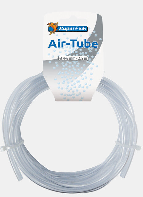 Voor het aansluiten van de luchtstenen en luchtpompen. In transparant wit en groen of als gewapende slang (8 mm) die niet kan knikken. Verkrijgbaar op de rol of in de winkel per meter.