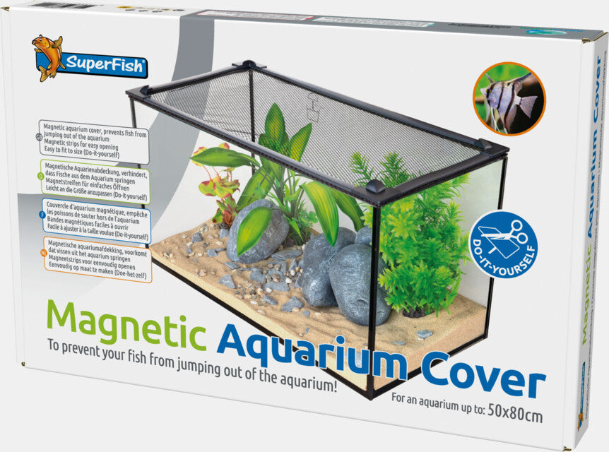 Handige magnetische aquariumafdekking, beschermt de vissen tegen katten, vogels en andere dieren en voorkomt springen.