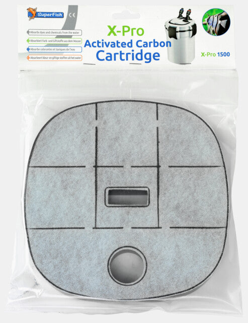 X Pro vervangingscartridges met actieve kool. Verkrijgbaar in vijf verschillende maten voor X Pro 400, 1000, 1500, 2000 en 2000 UV, elk filter heeft een ander formaat cartridge.