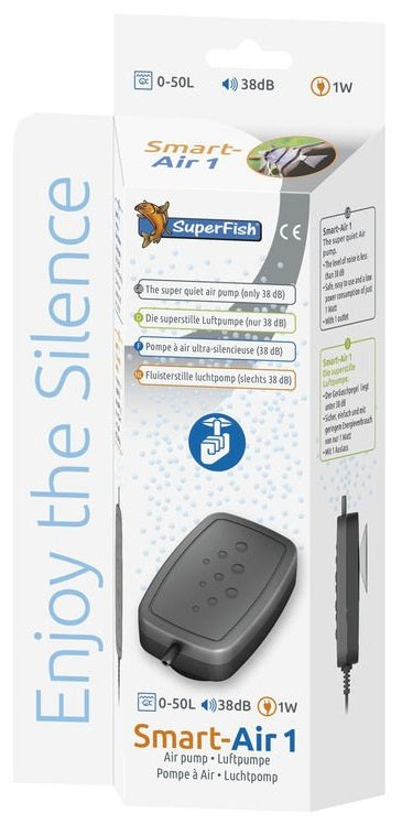 De SuperFish Smart Air 1 en 2 is een stille luchtpomp, ideaal voor een aquarium met een inhoud van maximaal 50 liter.