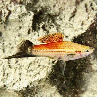 Naam: Xiphophorus helleri ananas Nederlandse naam: Zwaarddrager ananas wagtail Maat: ML Herkomst: Midden Amerika Temperatuur: 18-28 Ph: >7 Moeilijkheidsgraad: Makkelijk Voeding: vlees / alles