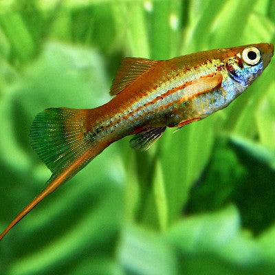 Naam: Xiphophorus helleri green Nederlandse naam: Zwaarddrager groen Maat: ML Herkomst: Midden Amerika Temperatuur: 18-28 Ph: >7 Moeilijkheidsgraad: Makkelijk Voeding: vlees / alles